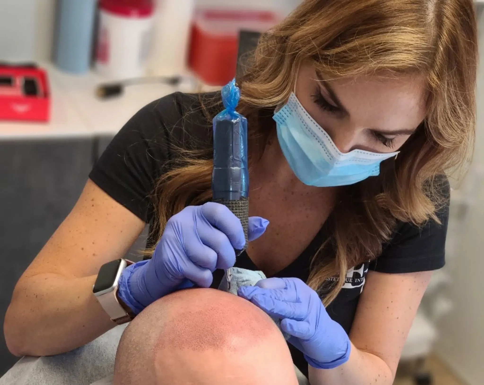 SMP is also referred to as a hair tattoo. It’s simply the art of creating the illusion of real hair follicles. Our artists are trained to use different types of needles (single micro and three-point) in order to achieve optimal results.